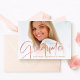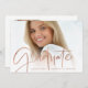Det här trendiget, elegant 2022 studenten-meddelandet, innehåller två foton från högskolan eller student. Avslappnad, det moderna faux ro guld-skriptet visas på ett överlägg tillsammans med två bilder av student. Du kan justera formuleringen på baksidan av kortet för att göra detta antingen till ett enkelt tillkännagivande från studenten eller till en gradpartsinbjudan. En snyggt och enkel studenten-design för 2022 års klass!