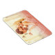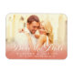 Bröllop spara datum-annonsmagneter har ett foto av förlovningen porträtt med övertäckningsdesignen "Spara datum" i ett snyggt mjukt vitt/elfenbensskript med fotofilter av färgaden ro guld. Anpassa med förlovningens foto och anpassningsbar.