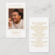 Affärskortets dimensioner: 3,5 x 2,0 tum. Detta enkla minneskort kan ges som en keepsaké på en Firande av Life eller begravningstjänsten eller skickas som en speciell hyllning till dem som inte kunde närvara. Anpassa det här kortet med ett favoritfoto, namn från din älskade, data och ditt val av bön eller dikt. Enkel att anpassa.