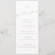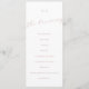 Det här enkla programkortet för elegant-skript är perfekt för en visemisk händelse som inspirerats av bröllop eller party. Utformningen har ett accentskript för elegant i ett romantiskt naturligt rosa färg med minimalistiskt stil. Det här programkortet kan användas för bröllopsmottagning, repetitionsmiddag eller vad som helst.