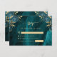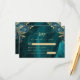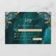 Kortet för OSA i elegant bröllop har delblått blommigt som är avaktiverat med guld faux foil greenery i två hörn, på en bakgrundsbild av färgagat i teal vattenfärg. Anpassadet kombinerar serif och typsnitt för handskrift med guld-färgad. Den omvända sidan har en passande blommigt för teal och guld och en agate-design.