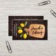 Rustic Wood Cshing Board Citrus Cooking Script Catering Charcuterie Party Affärskorts har en enkel men snyggt utformning med en styckningsbräda av trä med ett överlägg av ditt namn, företaget namn, typ av företag, beteckning eller ytterligare information som är accentuerad med citroner på framsidan. På motsatt sida finns dina kontaktuppgifter för personligen, social-medieinformation och QR-kod för anpassningsbar. Perfekt för ett stort antal olika företag marknadsföring från matlagning, party catering, charkuterier och antipastoverksamhet och mycket annat. Anpassa genom att redigera texten i textrutorna. Designad av ©Evco Studio www.zazzle.com/store/evcostudio