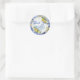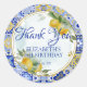 Medelhavsinspirerad utformning med ljusblå och gult italienska Amalfi-plattor kusten-stil med vattenfärgade citroner och faux-glitter-cirkel ram.