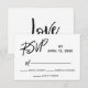 Ge är dina gäster ett sätt att svara på inbjudan från bröllop firande med hjälp av denna enkla svart på vitt OSA kort. I designen har jag använt ett modernt, handskrivet teckensnitt för att skapa ett grafiskt typografiskt överlägg som läser "OSA", "M" och "Kärlek" på baksidan. Fyll i mallens blanksteg med dina detaljer om du vill anpassa designen. Alla lagrar har lämnats olåsta så att du kan klicka för att anpassa och flytta om texten eller ändra storlek eller det redigerbara typsnitten. Bakgrunden till färg lämnades vit, men detta är också redigerbart. Byt till ett av era färger i bröllop om ni så önskar. Det finns en alternativ version i en liknande design som ger utrymme för menyval om du föredrar det alternativet. Tveka inte att söka hjälp med anpassning. designad av Melody Watson för Pappra Muserie.