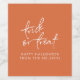 Skriptskript för Orangen Bus eller godis Halloween Vinflaska Etikett