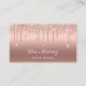 Gör ett bra intryck med det här chic affärskortet med ro faux glitter som droppar uppifrån och ditt namn i ett söt vitt skript mot bakgrund av ro guld. Perfekt för skönhetssalonger, makeup artists, hårstilisters och estetikers.