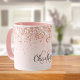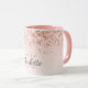 En övertoningsbakgrund för ro guld. Dekorerad med faux glitter-gnistor. Anpassa och lägg till ett monogram brev, initialer och namn. Namn är skrivet med ett modernt handskript i stil