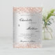 En formell bröllopsinbjudan med en faux silver-tittar bakgrund. Dekorerad med ro guld faux-glitter. Anpassa och lägg till information om namn och party. Namn är skrivet med ett modernt handskript i stil.