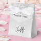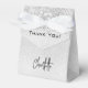 En elegant och glamorös födelsedag eller milstolpe. Faux silver tittar bakgrund med faux glitter, gnistor. Med texten: Tack! Anpassa och lägg till ditt namn. Black brev. Namn är skrivet med ett handskript i trendiget stil.