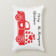 Elegant Red lastbil-familjen namn skriver text på vit accentkudde.