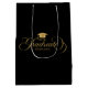 Student: En elegant guld-manustypografi på en svart utbytbar bakgrund färg med ett personlighetsanpassbart namn och år. Guld studentmössa.