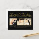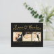 Faux-guld-folie på framsidan av det här designer-vykortet som du kan ladda upp till 3 av din egen förlovning/bröllop-foto porträtt. Du kan enkelt och snabbt anpassa den här designern genom att skriva över exempeltexten och lägga till egna foton. Elegant, chic, enkelt och klassligt guld-skript/kursiv typograf. Den fantastiska fotografi som används i denna mall är tack vare den begåvade fotografen Carrie Keller Bitting av Woven Nest Photography Pty Ltd - North Carolina, USA.