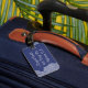 Ändra bakgrundsfärgen färg eller teckensnittet på den här bagagetaggen genom att klicka på knappen Anpassa.