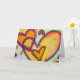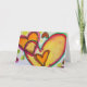 Persika- och orangefärgade hjärtan flyter samman likt bubblor som driver omkring. En grön kontur omger varje hjärta. Blekgula prickar ser ut som konfetti mellan hjärtana. Akvarellmålningen har ett lätt lager av guld och rosa ovanpå. Anpassa detta kort med din egen text och bilder med hjälp av alternativet Anpassa. Detalj från den inspirerande målningen med ordet "Laugh".
