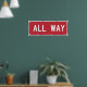 Ett tecken som säger allt på en röd bakgrund. Den här designen ser ut att vara verkligen på dessa Poster