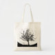 Svart och vit lino utskrift av en autumnal träd silhouette.