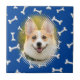 Cute anpassningsbar keramiska plattor med ben mönster. Blå ram-version.. Lägg till bild för anpassning. Gift-idé för hundälskare.