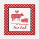 Konstruktion av kylmagneter i land har silhuetter från lantbruksdjur (ko, kyckling, gris) med röd bandana.