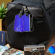 Skriv ut Bright Neon Blue Push Steel och Silver Bagagebricka