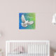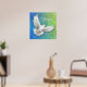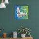 Den ursprungliga bran av en flygande vit fredsduva mot en söt blå grönt av konstnären Carolyn McFann av Two Purring Cats Studio tryckt på en poster kvalitetsskrift.