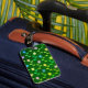 Det är lätt att känna igen blommönstrets grönt bagagemärke. Det finns söta, färglösa blommor mot en grönt gräslig bakgrund.