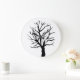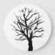 Svart och vit lino utskrift av en autumnal träd silhouette.