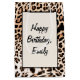 Leopard päls skriver ut mönster med skräddarsytt namn på födelsedagen. Text kan redigeras.