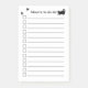 En personlig att göra lista med ett eget namn tillsammans med en silhuett av en svart katt och en del tass avtryck. En toppen söt till behållan av din lista att göra!