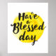 Modern kalligrafi i Black brev, "Ha en välsignad dag" med vacker cirkulär vattenfärg gult-guld i bakgrunden.