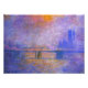 Monet Charing Kor Bridge-utskrift. Oljemålning på arbetsyta 1903. En av Monets vackraste utlämningar av Charing Kor-bron över Thames-floden. Användan av lila, rosa och gulter ger den tvinnade målningen en charmerande dröm som kvalitet. En underbar gåva till fläkt av Claude Monet, imponationism, Thames och Fransk Art.