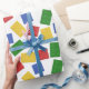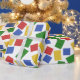 Den här roligten och det färgstarka omslaget pappert är perfekten för att omge en byggpaketgåva till din favoritbyggherre. Den har mönster i leksak som bygger tegelstenar i rött, blått, gult och grönt mot en vit bakgrund.