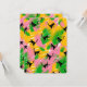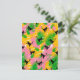 Vintage Monkey Mönster Skriv ut med löv i rosa, grönt och gult.