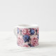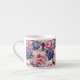Den här espresso storleka mugg visas med en underbar blommigt av blått och rosa peony. Anpassa det här objektet eller köp som det är. Licensierad utskrift