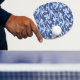 Pingpongpaddel visas i en blå militärkameraavtryck. Anpassa det här objektet eller köp som det är.