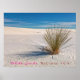 Bilden fångar upp ett serenökenlandskap med vita sanddyner under ett fritt blå himmel. En klump av yucca-växten i grönt ligger på en framträdande plats i förgrunden och kastar en lång skugga på den mogna sanden. Dynerna sträcker sig in i avstånd och skapar en känsla av vasthet och lugn. Himmel är en ljusblått med vita moln.