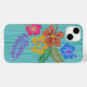 Rustiska hawaiiska blommor och löv iPhone 6s fodral. Färga hibiscus-blommor i rosa, blått och gult trycks över en akvblått bakgrund.
