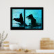 Poster glansfritt utskrift av fotomanipulation av teckningar som visar en sjöjungfrus silhuett i vatten. Utskriften är designad att se ut som två utskrifter i ett. Välj pappra lagrar och ram om du vill. Intressant och elegantens vägg. Ett underbart samtal biet.