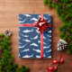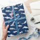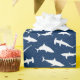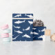 mörk blått omslutning av snyggt papper tryckt med en grafisk design av simhajar på vatten krusar. Du kan ändra bakgrunden färg till spelar ingen roll färg kostym. Coola för haj älskare, dykare och fläkt.