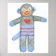 Äkta sock monkey med hjärta på bröstet. Originalkonst av Laura J. Holman