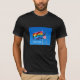 T-shirts med ett flagga för regnbåge med en amerikansk flagga, mot ett briljant blå himmel. Vi firar ett välkomnande, mångsidigt Amerika. Fotograferat på Cherry Grove på Fire Island. Del av Pridet Samling.