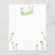 Vitaktig och glatt illustration av påsk vår på vit papper för ett brev. Skriva brev till en vän, dotter, moster, mormor, mor, barndotter. Den vita påskharn, som kör genom vår-ängen på en vit papper är en vacker design för mors dag brev eller fars dag brev.