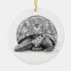 Fint specificerat skriva och bläcksköldpaddaillustrationen på en keramisk prydnad för runda.
