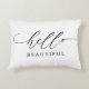 Denna moderna dekorativ kudde presenterar ord "hej" i en elegantsvart skrivar med "härligt" skriftligt under eller personifierar det till den spelar ingen roll något att säga dig skulle något liknande. Bakgrundsfärg kan också ändras till någon färg.