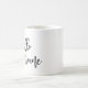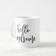 Denna mugg presenterar formulera "hejen som är stilig" i ett modernt svart handskrivet, skrivar.