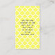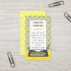 Dessa affärskort för författare har ett modernt chic med en vintage skrivmaskin på 50-talet till 60-talet i stil. Hela konstruktionen är gjord i söt och samordnar nyanser av grått, gult och vitt. Skrivmaskinen sitter på en gult bord med ett träutseende och väggen bakom den har en elegant quatrefolie| trellis mönster. På baksidan upprepas mönster i gultens nyanser.