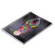 En briljant färgad flytande abstrakt inramad i guld och studerad med diamanter och pärlor. Sinuösa glödande strömmar av rött, gult, grönt, blått, lila och rosa kurva jämnt, som krymper från en underbar pärla till spetsen, accentueras i slutet av en stjärnsprängning. Denna regnbåge läggs mot en bakgrund av svart silke.