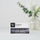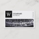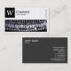 En visitkortsmall med ett långt rektangulärt bild-/fotoområde med ett närliggande foto av skrivmaskiner som kan bytas ut mot en egen bild eller ett eget foto och med en panel i överkanten lämnat för ett monogram eller en logotyp som innehåller "W" som exempel, ett monogram som också kan ändras. Designen balanseras med fyra små rektangulära textbaserade symboler på högerna skapat med symbolteckensnittet Semafor. Det vita området är också en ram-mask som skapar det enkelt att placera och ändra storlek på ett foto under. Företag namn och affärstyp/offert på framsidan med namn och kontaktuppgifter på baksidan i vitt på en kontrasterande mörk grått-bakgrund. Kan anpassas till olika företag och andra användor.