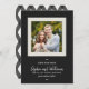 Snyggt Foto Spara datumkortet som innehåller ditt foto omgivet av ett gräns, under vilket orden "Spara datum" i en skrivmaskin som typsnitt och parets namn i skript i ett benvitt färg mot mörkens grått bakgrund. Kortets baksida har överlappande mörk grått linjer mot en benvit bakgrund. Anpassa den genom att ersätta platshållartexten och ersätta exemplet/platshållarfotot med ett eget foto. Om du vill ha fler alternativ som att ändra teckensnittet och det är storlekt/färg eller mellanrummet mellan brev klickar du på knappen "Anpassa". *Observera att Zazzle Watermark som visas i zoomförhandsvisningen INTE visas på den färdiga tryckta produkten. © Rosewood and Citrus
