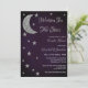 Skrivs i möhippan med stjärnor. Silver måne och stjärnor mot mörken vid midnatt lila