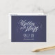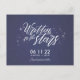 Den roliga temat sparar vykortet i en blå stjärnor himmel som är "skriven i stjärnorna". Anpassa med din bröllop-information. Baksidan av vykortet är personlig med din returadress, bröllop-datum och ett anpassningsbar-meddelande. Skicka ut e-post till vänner och familj och be dem att reservera ditt bröllop-datum.